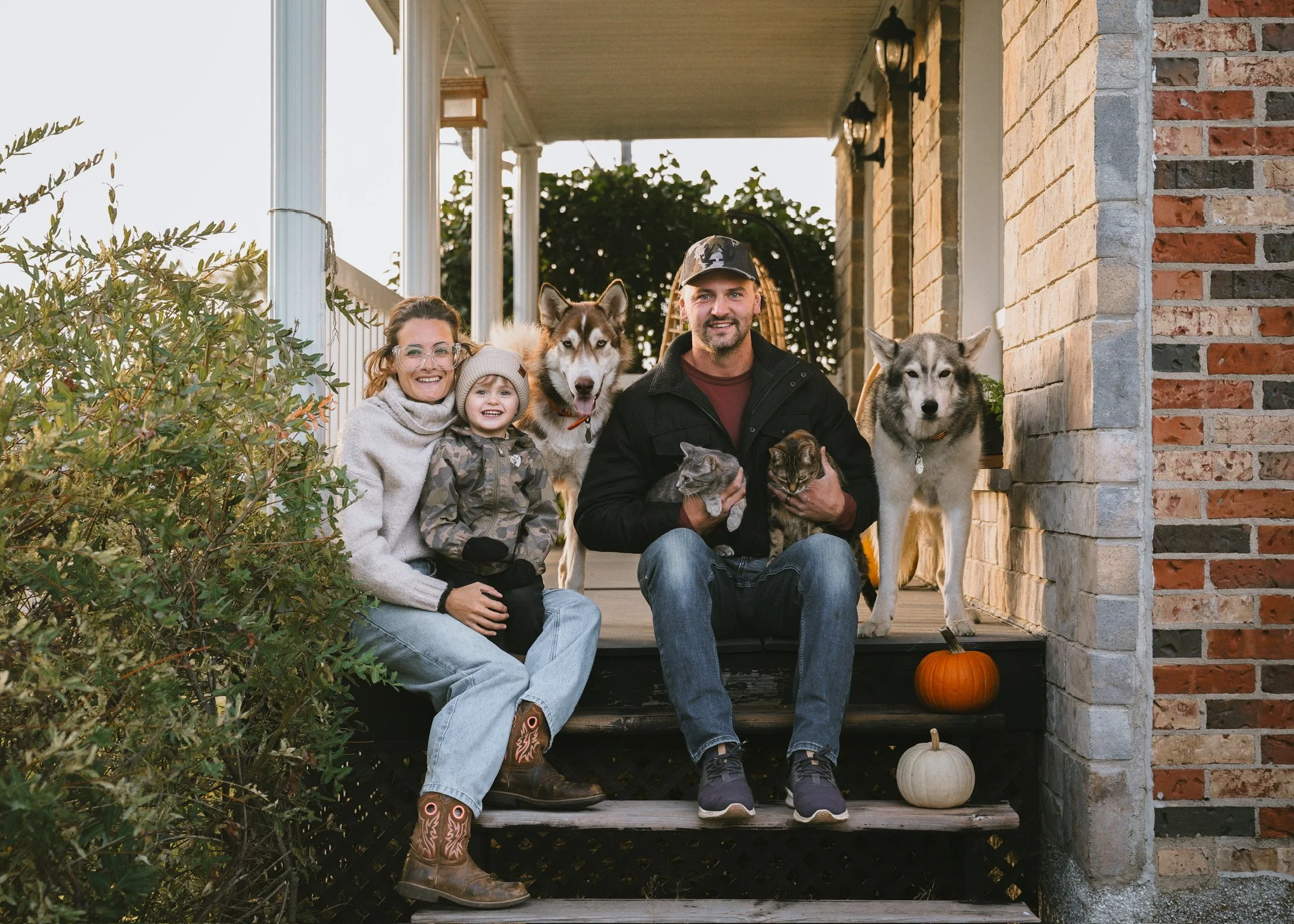Jayson est mon mari, mon partenaire et l’homme à tout faire de la pension! Que ce soit pour nourrir les chiens, superviser les sorties ou ajuster l’environnement, il est toujours prêt à mettre la main à la pâte. Son œil pratique et ses talents en construction permettent d’offrir un milieu sécuritaire, fonctionnel et confortable pour tous nos pensionnaires. De la clôture aux structures extérieures, tout est fait maison… avec amour!